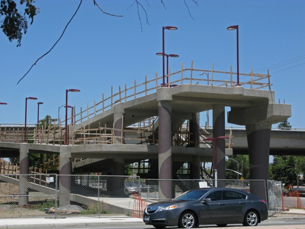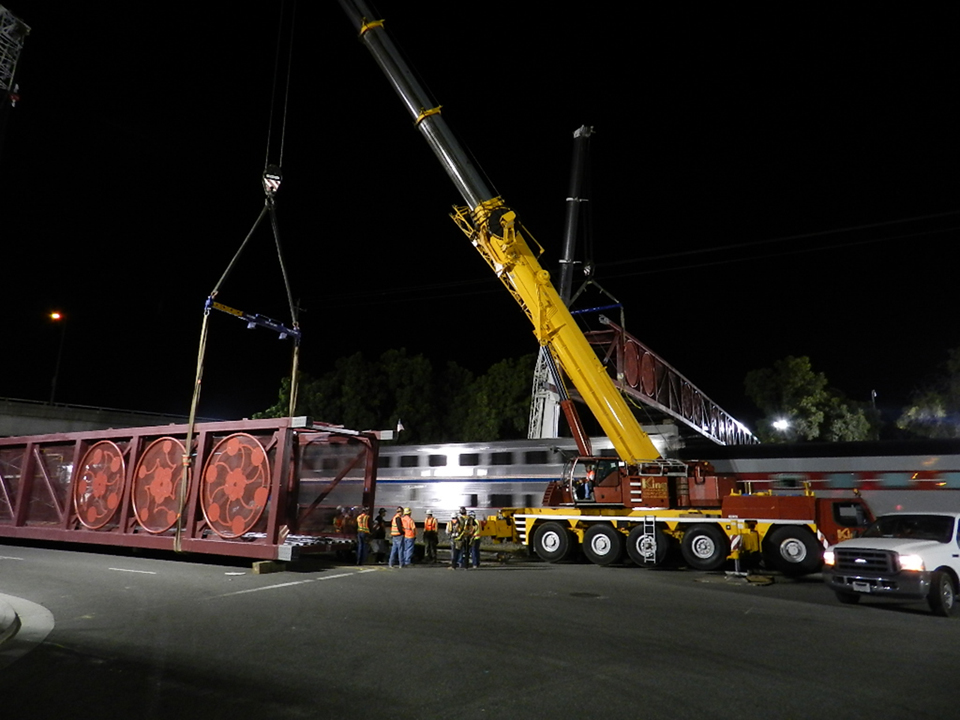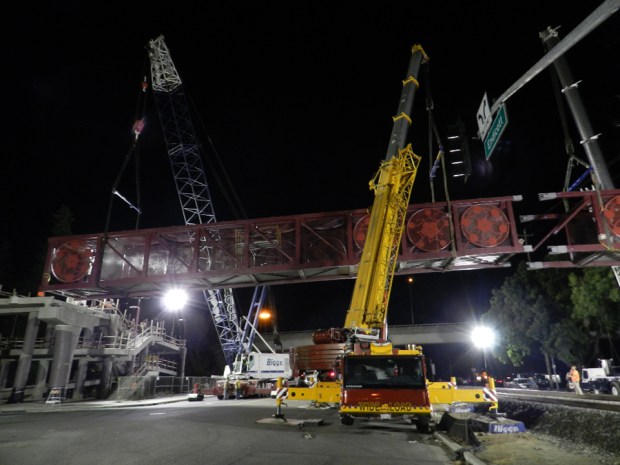 Blossom Hill Pedestrian Bridge, in San Jose, CA, is nearing completion. A few nights ago, the installation crews lifted the bridge into place.