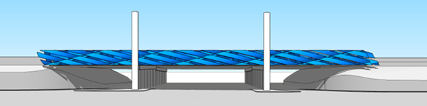 The identity elements we proposed had to be free-standing from the bridge, so we started exploring the idea of cladding a truss. A truss allows us to span the distance without tying back to the bridge while also masking the bridge behind. This armature then enabled us to explore how to create the sense of movement in an identity piece that would relate to our theme.