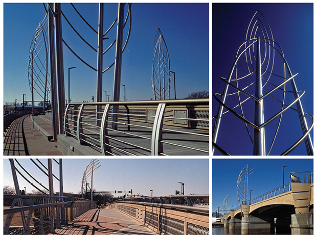 Not all of our work is in surface patterning. We also add form to projects and shape their appearance. Because of this, we have learned to work with a variety of materials to achieve our goals. Concrete, metal, even lighting and landscaping can transform a space if treated within a holistic conceptual vision. The towers of Douglas and Lewis Street Bridges, above and below, work with all the other elements at the site to form a larger expression. They were fist modeled physically and digitalized and rationalized for fabrication.