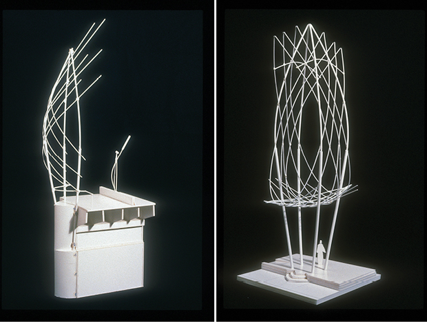 Vicki Scuri SiteWorks’ early projects are characterized by a strong sense of physical and visual experientially. Physical models, built in paper and board, gave a 3D representation of the plans and allowed for exploration of form and pattern. Making a model can tell so much more than a drawing alone. Spatial relationships are important to our projects, which are always integrated into larger sites. Dreamy Draw Pedestrian Bridge, above and below, shows how a model can help fit a project to its site better. The ramps, walls and railings were all modeled physically and the final project was built to reflect design of the model.