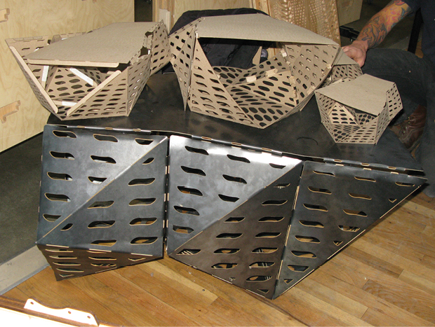 Our next steps include using digital tools to fabricate physical objects. These objects will have texture and materiality. We have reinvested ourselves in the physical, finding a way to use digital tools to create real models. Patterns and textures are different in real life than on a computer screen and only by making physical prototypes can a design be truly experienced. All of our initial design work for Spokane, above and below, was done digitally but it was only until we laser cut paper models that we could understand the scale and interaction of the patterns.