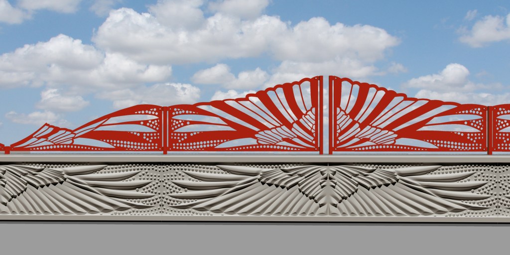 The red-tailed hawk is a majestic bird that symbolizes power, strength and resilience. The intricate patterns and elegant shapes of the Red-Tailed Hawk’s wings inspired our patterning for concrete bridge parapet barriers and the steel grills resting on them.