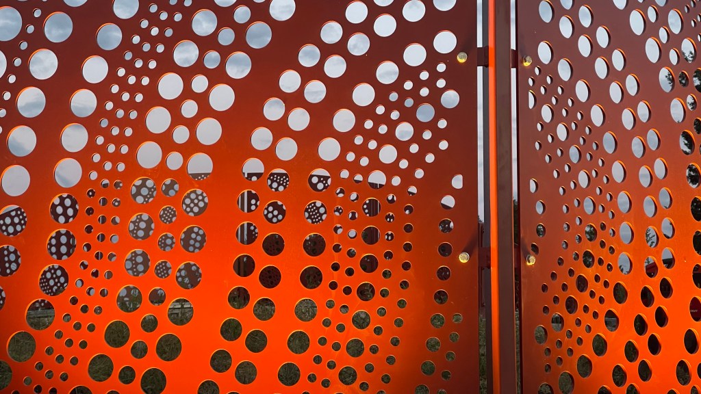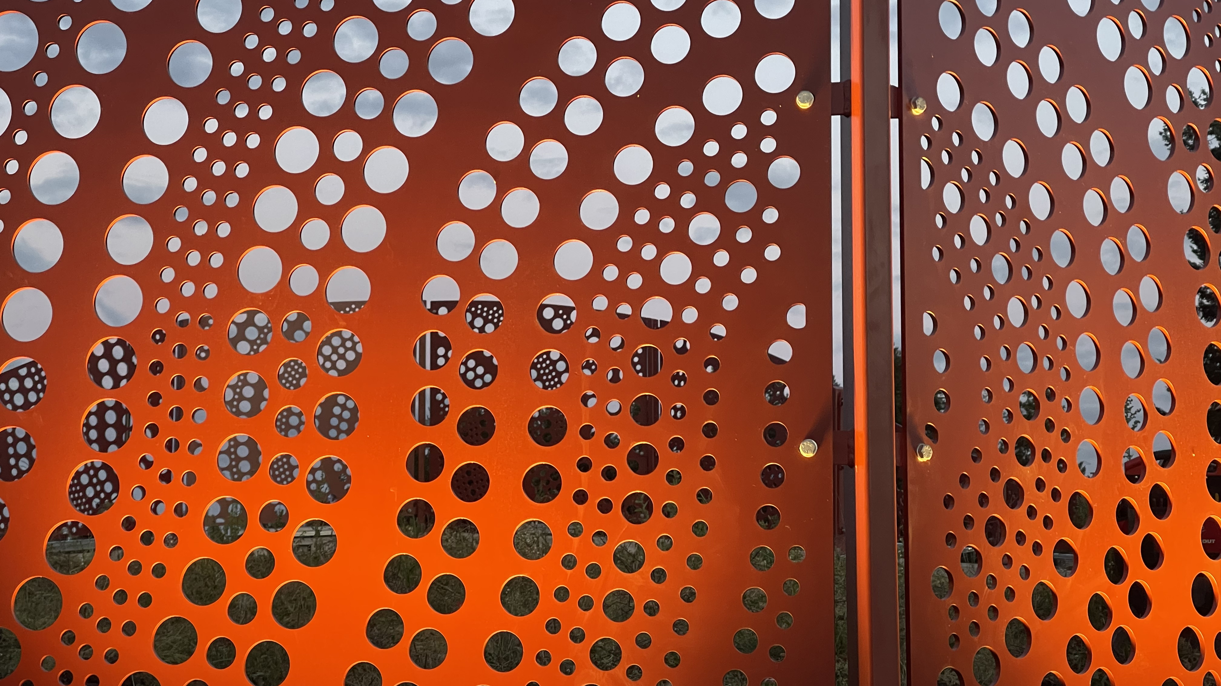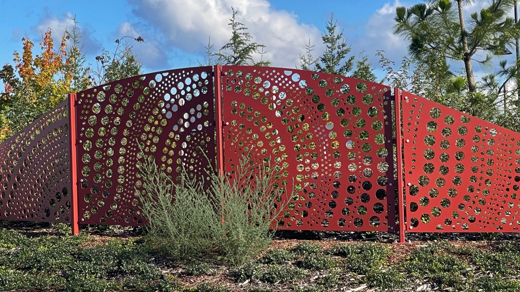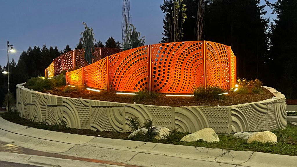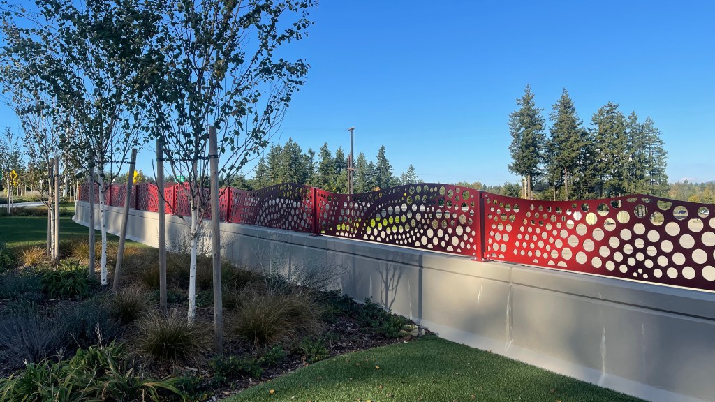 We designed the screens, working closely with the Landscape Architect and the team, to fit into the landscaping of the medians, wrapping through the space to create a volume of form and pattern.